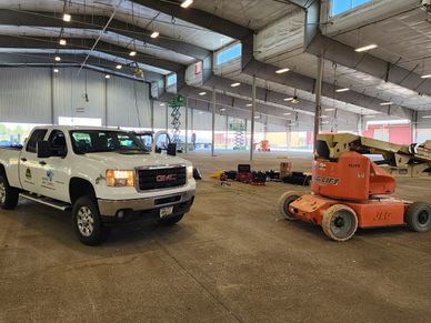 This structure has many purposes throughout the year including the Nebraska state fair. Many events with booths set up and birds were becoming quite the nuisance nesting inside the insulation around the top and on the many beams and fans.
