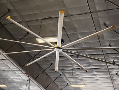 One of the many specialties we have with bird netting installs is the way we are able to custom install netting over, around, behind, or under objects. In this case, the Big *** Fans (that is what they are called), we had to take the blades off each of the 4 fans, put netting up at angles on the angled beam supports and across the top and reinstall the fan blades and test to make sure the blades don't hit the netting