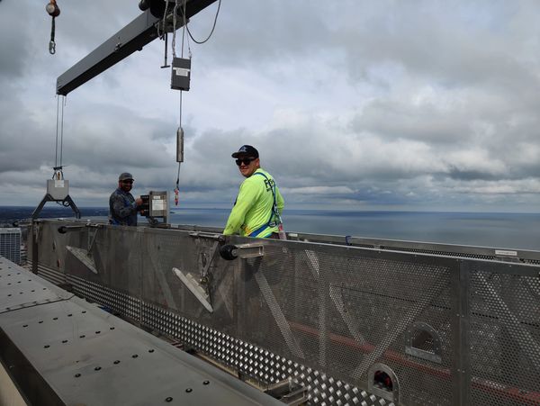Extreme heights are a possible situation in the work of bird control. A mere 420 feet to the ground at this location